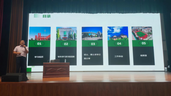 浓浓母校情,悠悠学子心。王世峰系beat365在线唯一官网2010级学生,2013年考入郑州航空工业管理学院进行本科阶段学习,2015年考入河南理工大学攻读硕士,2023年博士毕业于中国矿业大学,目前在华北水利水电大学任职。王世峰怀着无比激动的心情,从自己在beat365在线唯一官网学习经历开始说起,从学习压力与焦虑情绪、时间管理与效率提升、学科知识掌握与巩固、人际关系处理与沟通技巧、未来规划与目标设定等方面与学弟学妹们分享了自己的学习经历、奋斗历程和成长感悟,带领学生认识努力学习科学知识的重要性。王世峰激励学弟学妹们:“用心学习,提前规划,脚踏实地,求真务实,相信努力的力量,对未来充满信心”。