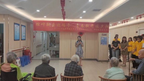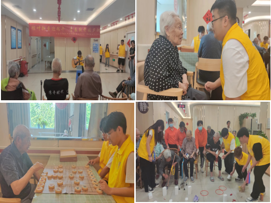 当热闹喜庆的背景音乐响起,端午节文艺演出活动正式拉开序幕,师生们为养老院的老人们献上歌曲、舞蹈、吉他弹唱、太极拳、游戏等节目,精彩演出不断,赢得老人们的阵阵掌声。特别是套圈游戏,更是把现场氛围推向了高潮,现场气氛热烈而温馨。文艺演出结束后,志愿者们与老人进行亲切交谈,了解他们的生活经历、兴趣爱好和特殊需求,陪同老人们聊天,倾听心声,让老人感受家人般的关爱。志愿者们还体验了养老院丰富的娱乐设施,与老人一同下棋,打麻将等,尽享欢乐时光。