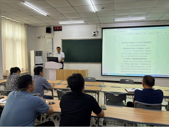 beat365在线唯一官网院长黄双成带领大家学习了《教育部部长怀进鹏在中共中央举行的新闻发布会上介绍有关情况并答记者问 统筹推进教育科技人才体制机制一体改革》《中共中央 国务院关于弘扬教育家精神加强新时代高素质专业化教师队伍建设的意见》两个文件。