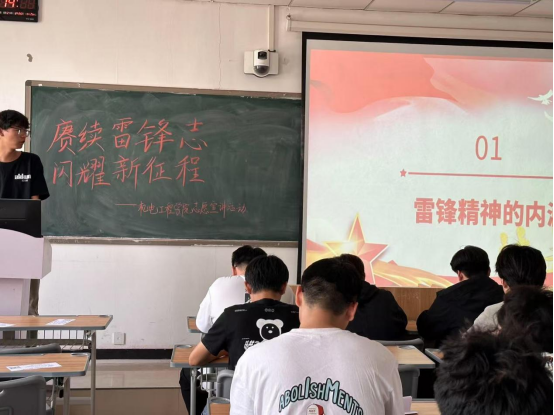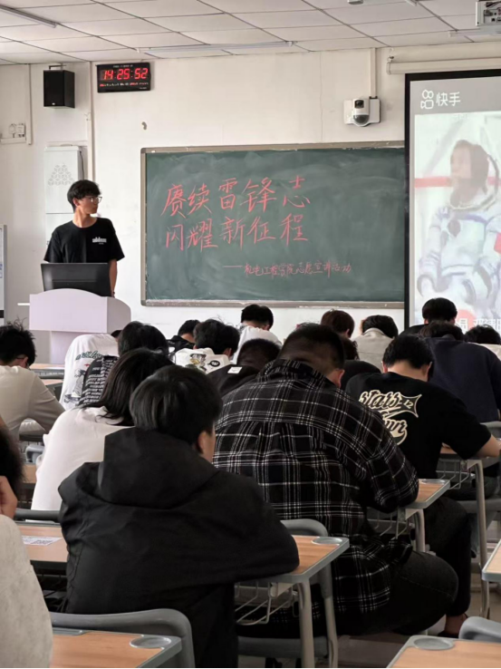 活动伊始,学生代表发言,讲述了雷锋精神在新时代的重要价值,鼓励同学们以雷锋为榜样,将个人成长与社会发展紧密相连,积极践行社会主义核心价值观。随后,宣讲团成员依次上台分享他们的志愿服务经历。从假期返家乡,到社区关爱孤寡老人的暖心行动,再到大型赛事中的无私奉献,一个个鲜活的事例生动诠释了新时代雷锋精神的内涵,深深打动在场同学。