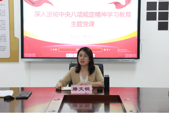 滕文锐先后围绕中央八项规定精神如何改变中国、为什么开展学习教育、如何践行中央八项规定精神三个问题,分享了自己的心得和感悟,带领同志们进一步领悟了中央八项规定精神所带来的历史成就、开展本次学习教育的重要意义。就后期的学习和实践,滕文锐提出三点要求,希望大家在学习上要远离“形式主义”,树牢政治自觉的“精气神”,在工作中远离“官僚主义”,把稳为民服务的“风向标”,生活中远离“奢靡之风”,戴好遵规守纪的“紧箍咒”。