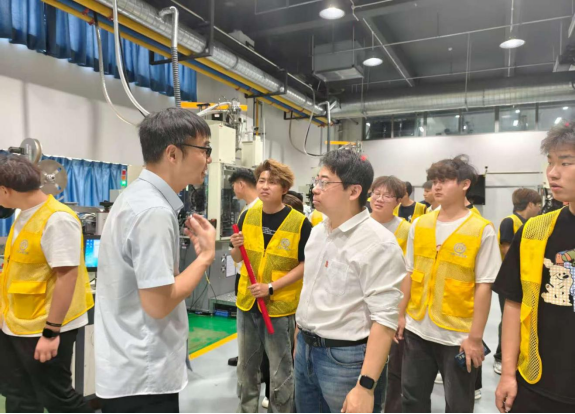 在企业相关负责人陪同下,调研团队首先参观了河南乾德精密技术有限公司的精密加工车间、自动化生产线及产品检测中心。企业专注于高精度机械零部件研发与制造,拥有先进的数控加工设备与智能化管理系统,生产流程规范高效,技术工艺精益求精。通过实地观摩,学生们直观了解了现代精密制造企业的生产组织模式、质量控制体系及技术创新能力,对“专精特新”企业发展路径有了更加深刻的认识,进一步增强了专业认同感和职业发展方向的清晰度。