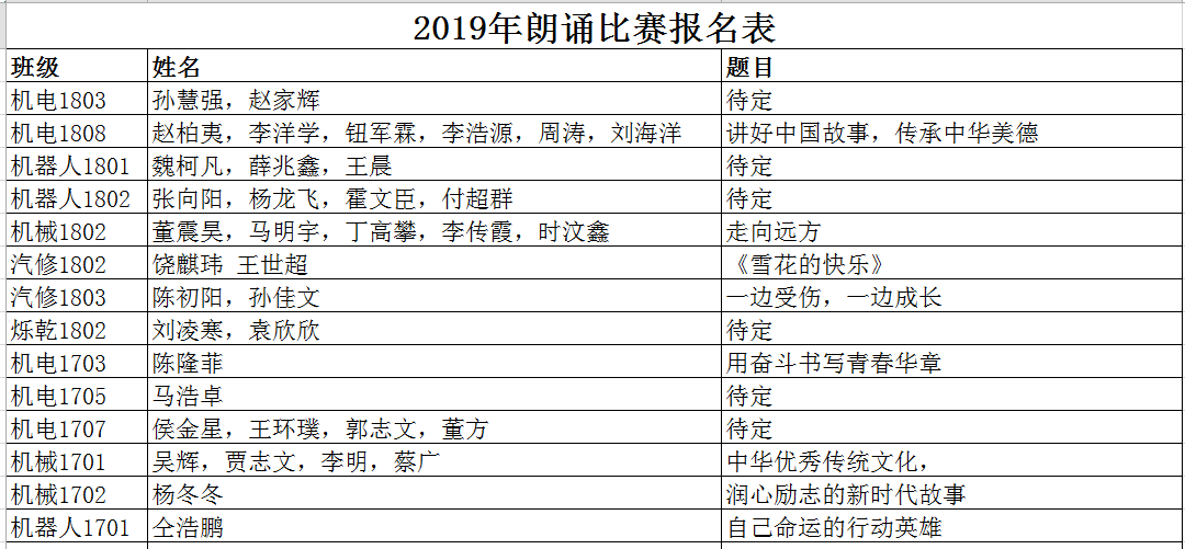 本次初赛以班级为单位进行,经过初赛,共有15个班级代表队进入学院组织的复赛环节,复赛具体名单如下: