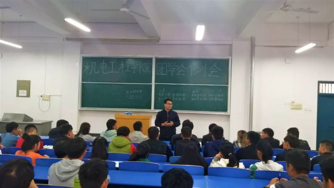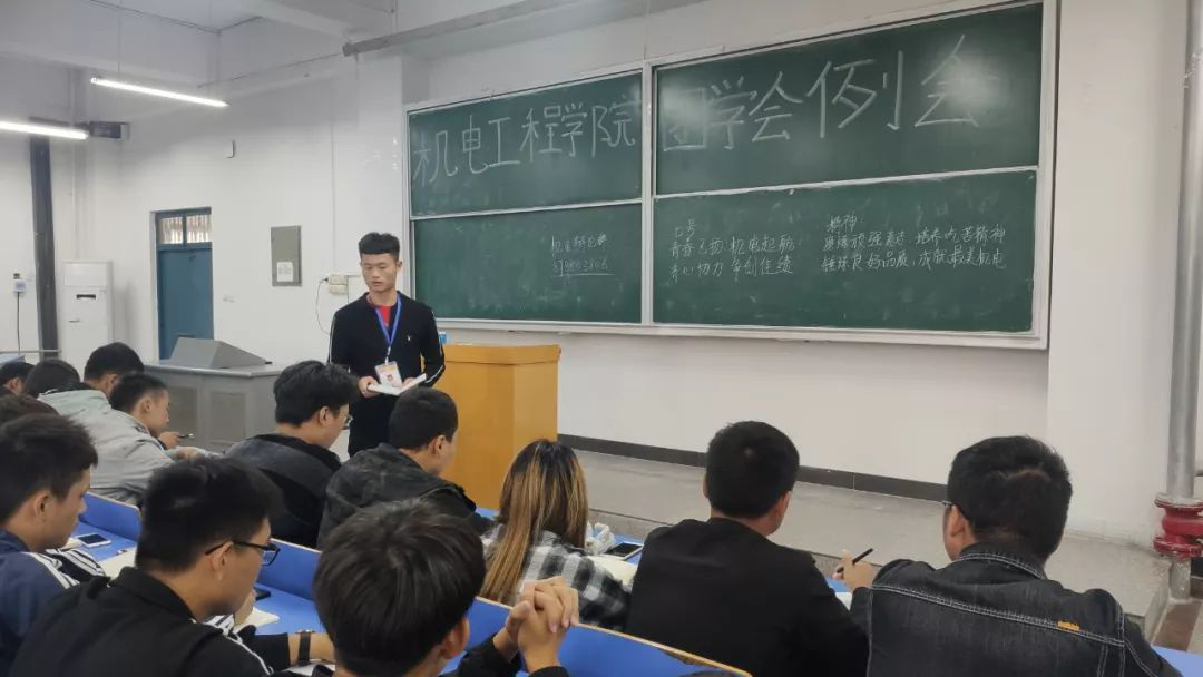 然后侯主任讲话,他讲到:团学会的工作就是要服务师生,同时要积极参加各项活动,这也是提升自己综合能力的机会,更要在活动中起到带头作用。通过团学会的磨练,可以增加自己的见识,这是一种无形的财富,希望同学们在机电团学会这个大家庭能够不断进步,同时为学院的进一步发展做出贡献!