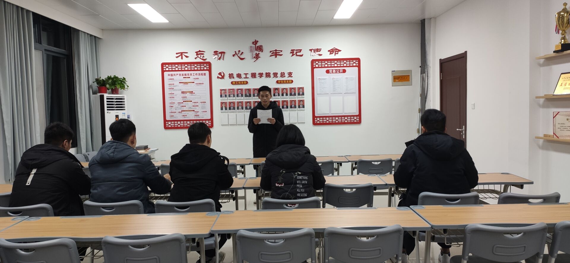 最后,此次朗诵比赛在和谐温馨的氛围中落下帷幕。大家都期待着来年第二次的比赛,到那时大家一定百尺竿头,更进一步,在一点点进步和切磋中,机电朗诵小组将会迎来更美好的明天。