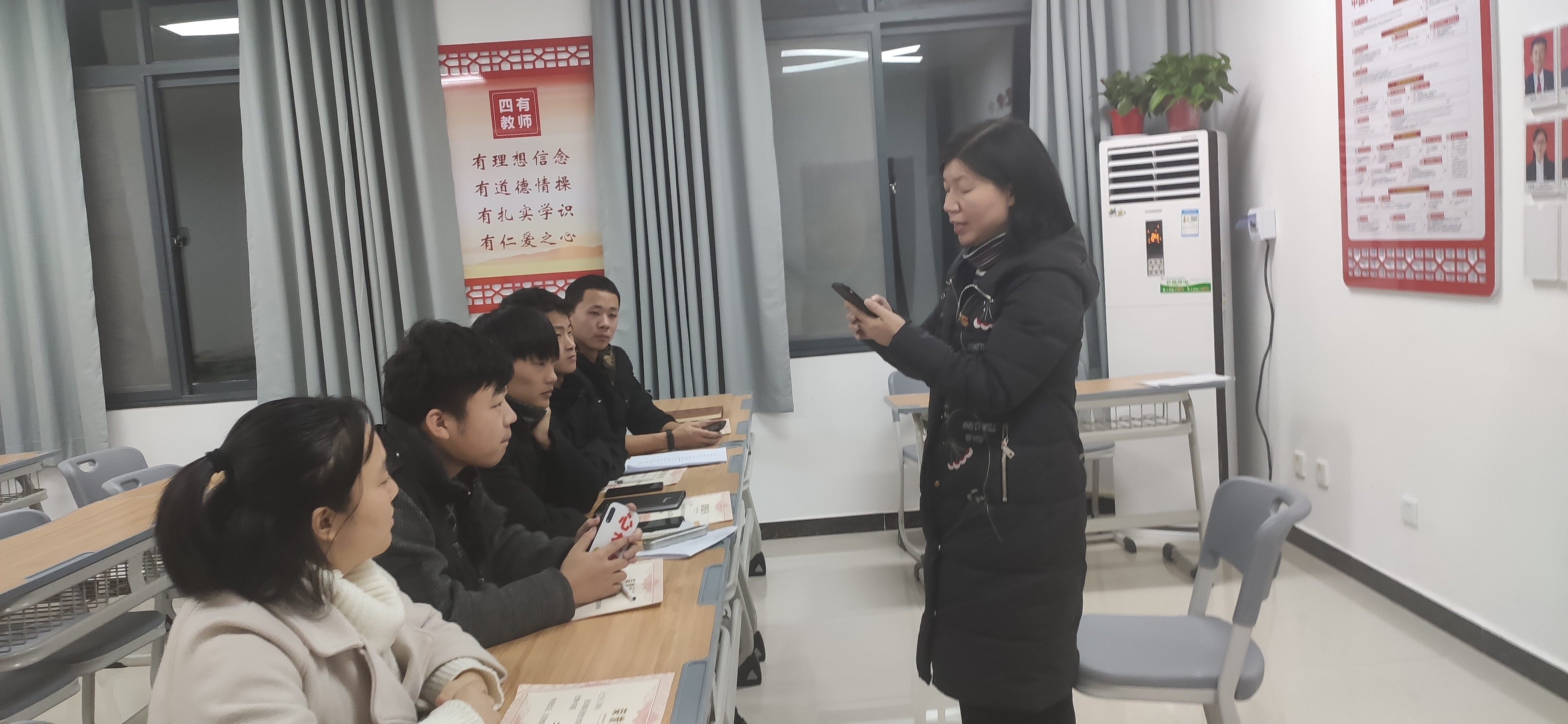 比赛后,所有评委都对选手们的表现进行了细致的点评,选手们都认真、虚心地听取了意见。邓书记也专门对选手们的朗诵进行了悉心的指导,她讲到:我们小组要以赛促学,通过比赛,发现自己在朗诵方面存在的问题,进一步完善。同时,关于朗诵,她给大家讲了朗诵的概念、特点及技巧等方面的知识。