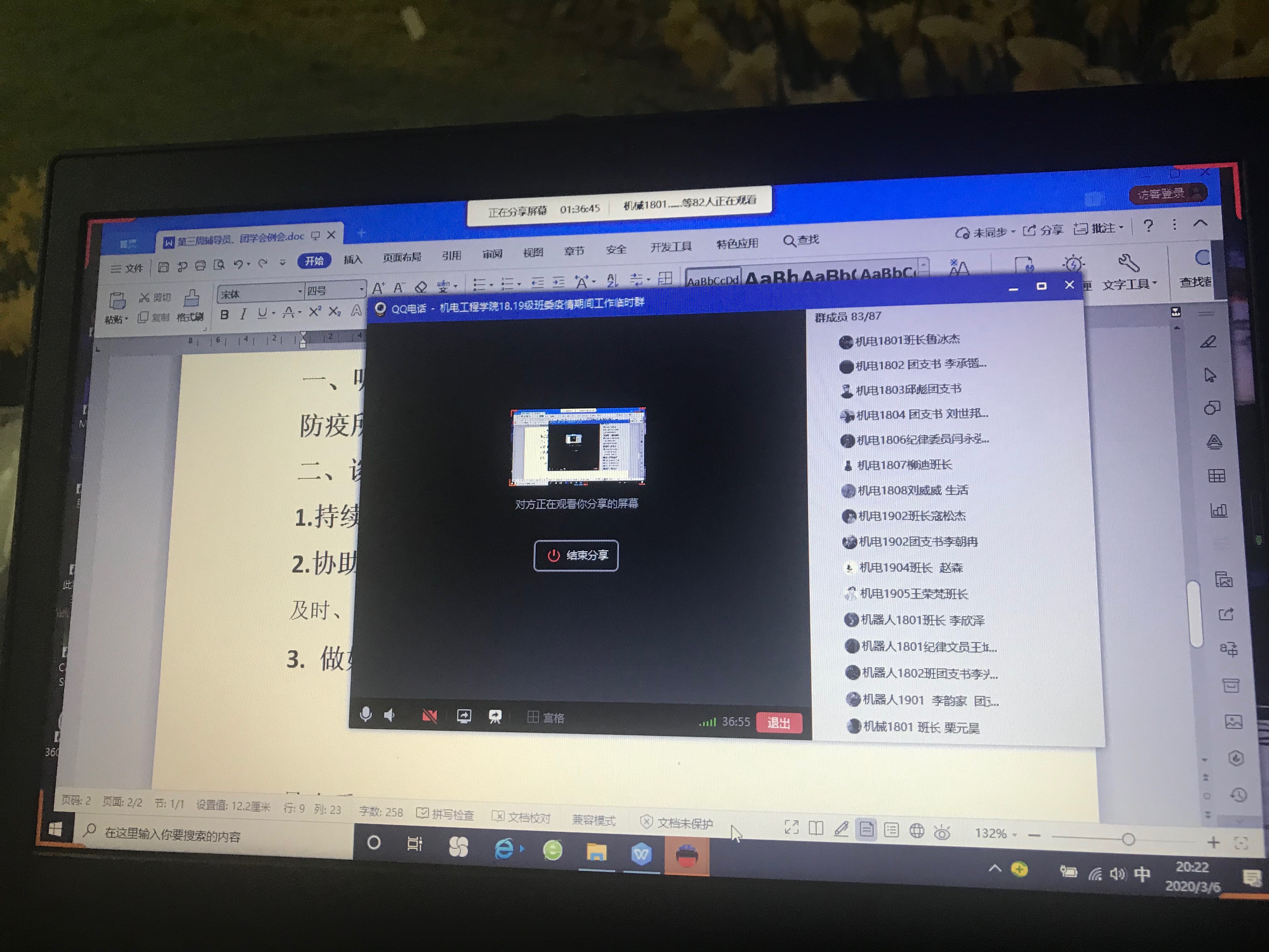 2020年3月6日下午6点,beat365在线唯一官网通过qq分享屏幕如期召开了第三周辅导员例会,全体辅导员参加,例会由学院党总支副书记邓艳丽主持。