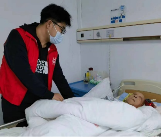 汽制2103班杨森骅同学在河南省郑州市中原区仁爱医院进行了为期8天的社会实践,他主要工作是陪护孤寡老人,帮助病床上的老人看针、翻身、喝水、吃药,陪同行动不便的老人一同散步聊天。