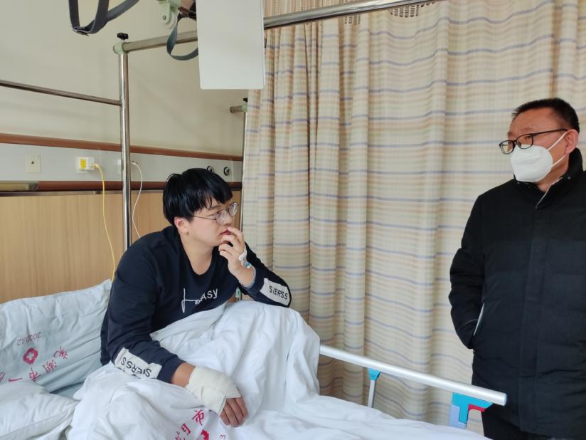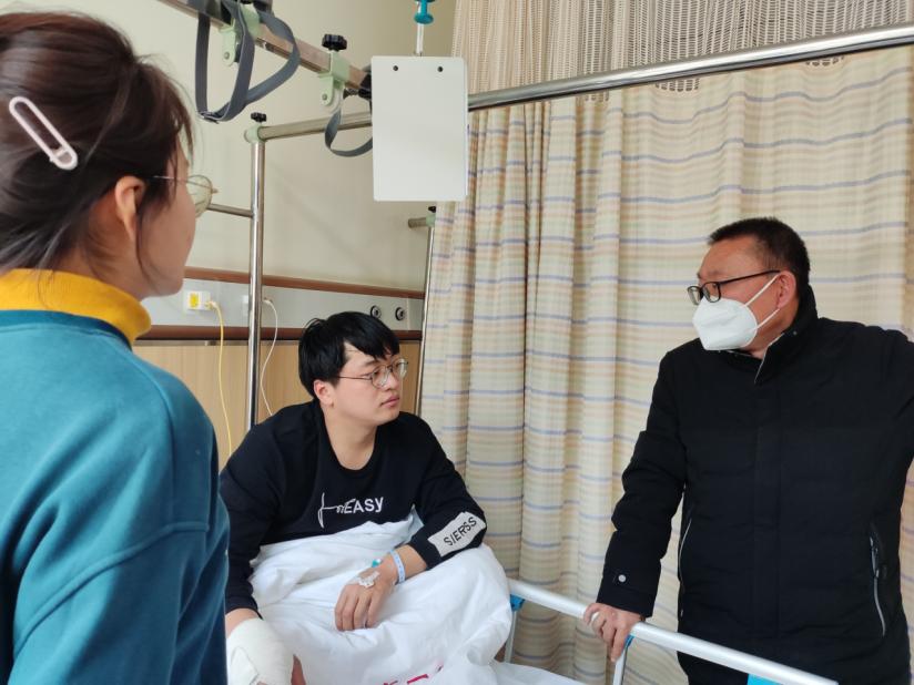 寒假期间,机电2002班学生遆梦贺在实习单位受伤,该生家庭特别困难,父亲外地打工,母亲在家照顾老人无法分身,一直是学校的重点资助对象,两次荣获国家励志奖学金。beat365在线唯一官网书记张亮和院长黄双成接到实习老师和辅导员汇报后,紧急委派副院长李凤银和资助专员江丽梅赶往安徽芜湖探望受伤学生。通过了解学生情况,与学生姐姐充分交流,了解了学生及家长的需要,访后及时跟踪,将“关心、关爱“学生的工作做到“家”,着力推进资助育人的“实、细、长、深”,认真征求学生家长对学校资助育人工作的意见或建议勉励学生学会在逆境中成长,以优异成绩感恩父母、回报社会。