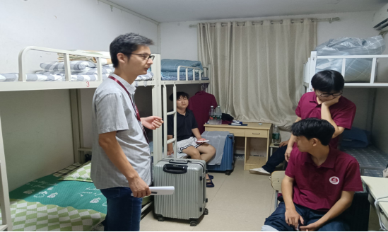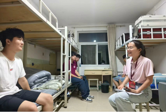 轻言细语,体贴入微。当萌新们开启全新的生活篇章,你们就是学校领导和老师们心中最大的牵挂。带着关心与问候,老师们走进每一个房间,与同学们亲切交流。无论是生活上的小困惑,还是对未来的大憧憬,萌新们在这一刻与他们畅所欲言。这不仅是一次简单的看望,更是学校对新生们的深情关怀,是师生之间心与心的贴近,是温馨与力量的注入。