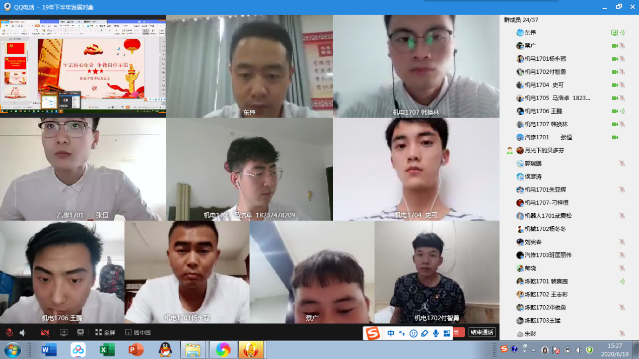 为响应“两学一做”学习教育常态化制度化要求,全面贯彻落实国家关于高校思想政治工作部署,不断提高党员综合素质,充分发挥学生党员的先锋模范作用,根据学校工作部署,beat365在线唯一官网党总支于2020年6月19日下午3点,通过qq分享屏幕形式对2020届毕业生党员开展“牢记初心使命,争做岗位示范”再教育活动。会议由党总支副书记邓艳丽主持。会议共分为五个部分。
