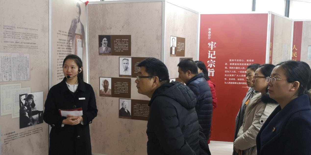 本次展出共分为理论探索、理想信念、不懈奋斗、牢记宗旨、自身建设和出彩中原六大部分,分别以不同时期的珍贵照片和重要事件进行了说明。通过参观学习,党员们进一步明确了这些知识:中国共产党始终将马克思主义作为自己的行动指南,并在实践中不断丰富和发展;中国共产党员要坚定共产主义远大理想和中国特色社会主义共同理想,不断把为崇高理想奋斗的伟大实践推向前进;实现中华民族伟大复兴是近代以来中华民族最伟大的梦想,为实现这个目标,中国共产党带领人民进行了艰苦卓绝的斗争,谱写了许多壮丽史诗;不忘初心,牢记使命,坚持党的根基在人民,党的力量在人民,一切为了人民,一切依靠人民,充分发挥人民的积极性、主动性和创造性,不断把为人民造福事业推向前进;始终把党的自身建设放在首位,把党建设成为始终走在时代前列、人民衷心拥护、勇于自我革命、经得起各种风浪考验、朝气蓬勃的马克思主义执政党;中原大地是人口大省、粮食大省,地理位置优越,在中华民族发展中具有重要地位,实现中国梦需要中原更加出彩。