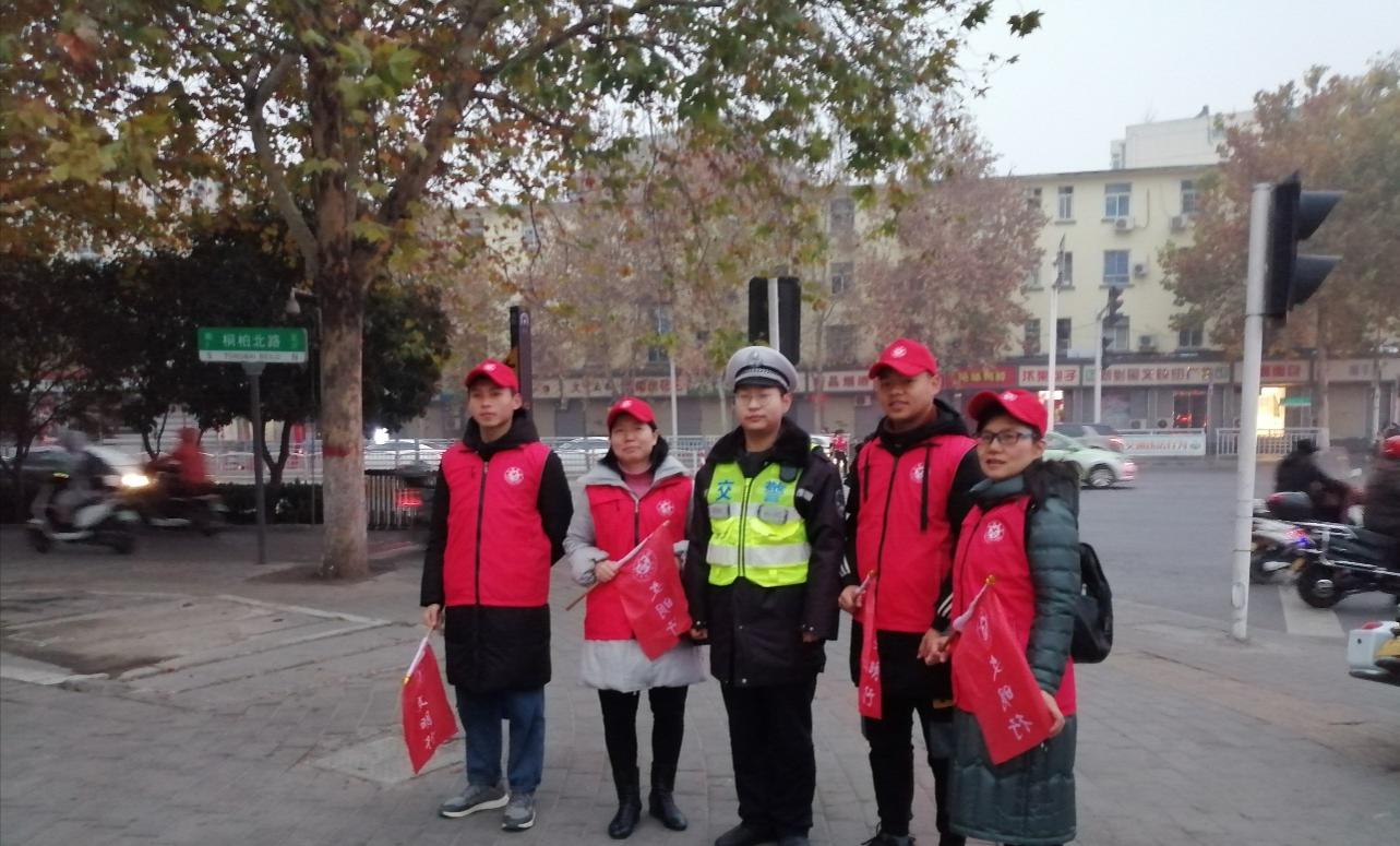 为了进一步推动郑州市文明城市建设,我校承担了桐柏路和棉纺路交通岗文明出行的交通志愿服务活动。2019年12月25日早上7点20分,beat365在线唯一官网党总支邓艳丽副书记带领文明交通岗志愿服务团队到达岗位,并与该路口的交通民警进行沟通,具体了解执行任务要求。然后开始协助民警维持早高峰7点半至8点半的交通秩序,及时劝阻一些不文明出行行为。