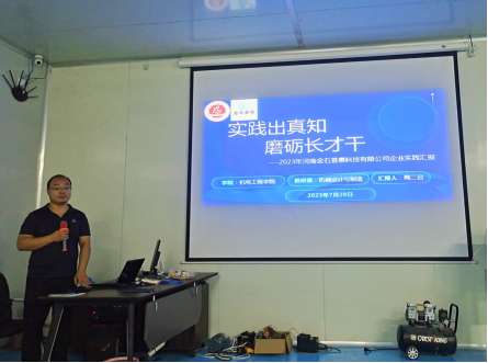 汇报会上,5名教师分享汇报了企业实践成果和收获,感受到本次教师企业实践收获颇多,校企双方不仅能充分结合产品的结构特点,把企业非标产品组装调试的生产任务转化为学校的教学任务,在教学中引入实际生产过程,加强机械设计、电气设计、编程能力等实用技能的培养,提升学生的产品创新意识,从而有效提升人才培养质量,而且同时教师的个人技能水平也得到了提升,建立起了教师和企业的良性互动,为进一步校企合作融通奠定了基础。