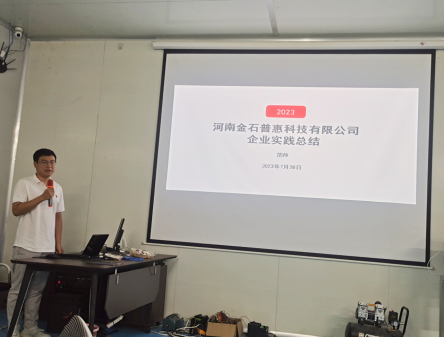 为进一步落实教育部等七部门印发的《职业学校教师企业实践规定》,提升教师实践教学能力,落实暑期一个月教师下企业实践成效,7月28日beat365在线唯一官网在河南金石普惠科技有限公司举行教师企业实践分享汇报会。学院院长黄双成、叶青玉老师、教务处张予新老师、企业总经理王晨辉以及beat365在线唯一官网的5名企业实践教师参加了分享汇报会,会议由机电工程院长黄双成主持。