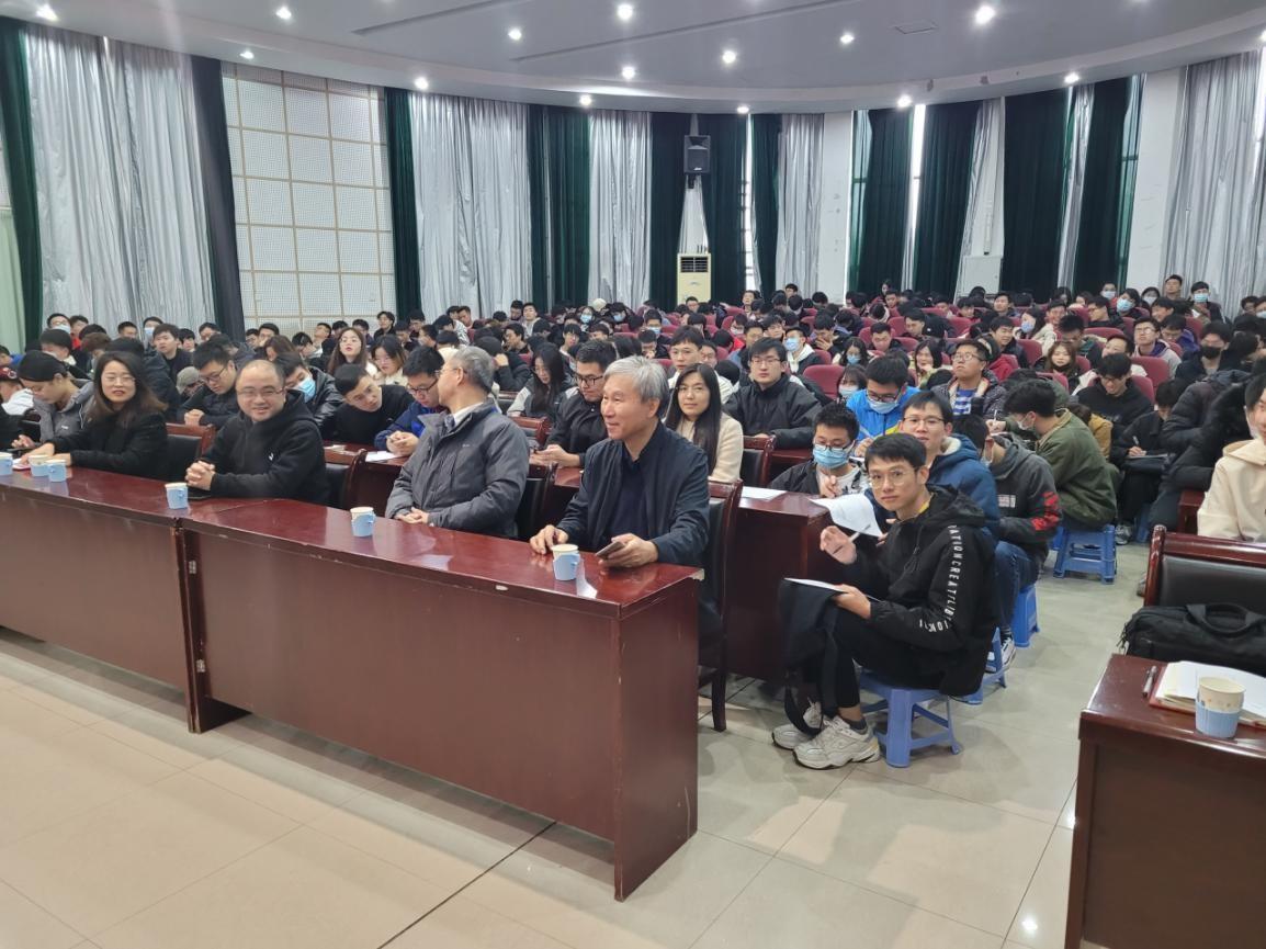 在简述自己从台湾大学到美国留学期间的一些经历后,杨永斌院士详细介绍了自己留美期间的博导William McGuire先生。他以写论文时导师对自己的严格指导为例,表明William先生对自己以后学习和生活的影响,敬佩之情溢于言表。杨永斌院士阐述了自己对于师生关系的理解,并寄语同学们“要多读书,多运动,凡事都要认真,要以创造性的思维来解决问题。”